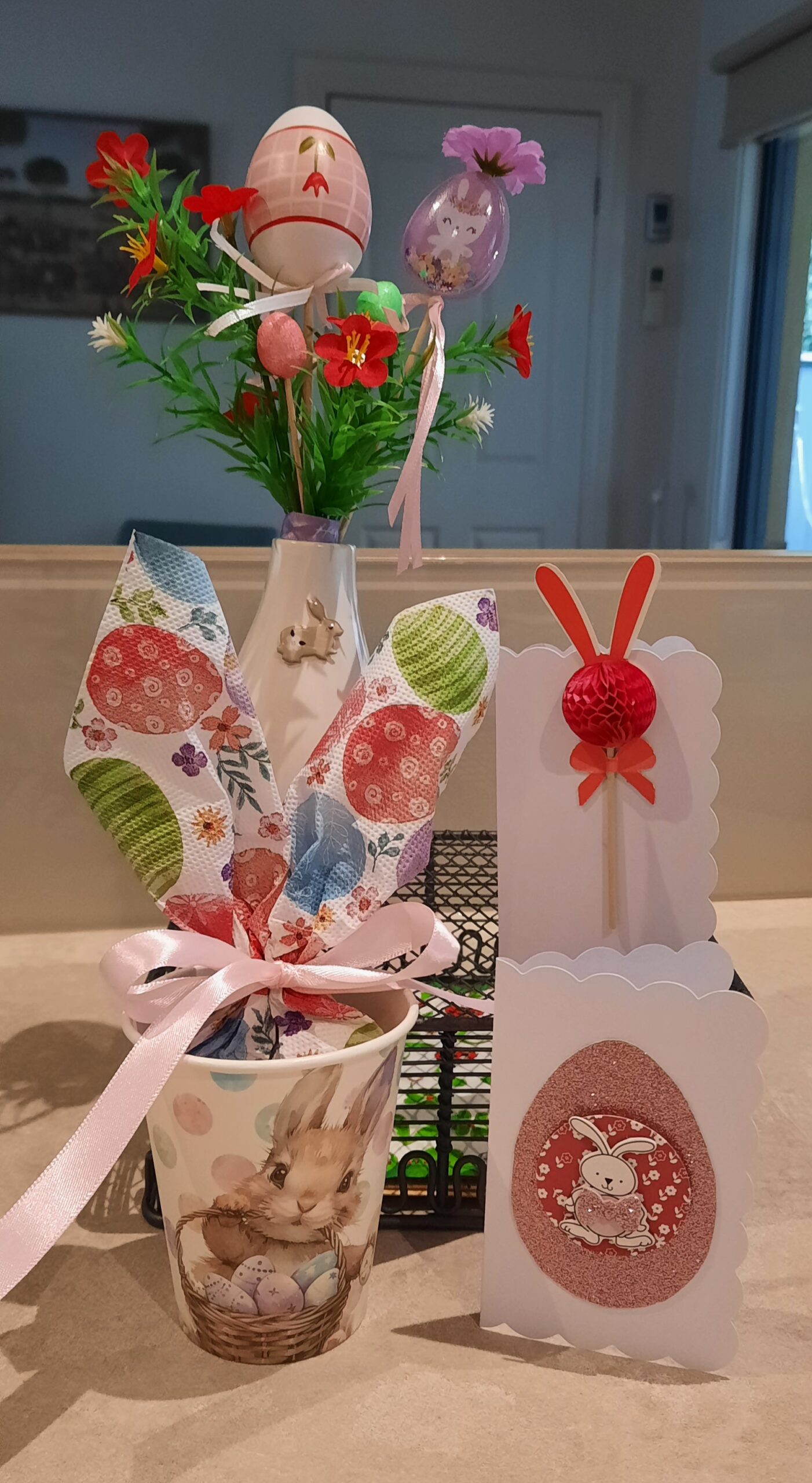 The “Easter Rabbit” came to visit the Craft Group last Monday and the 16 ladies present used all their considerable skills to make a variety of Easter decorations and cards.
