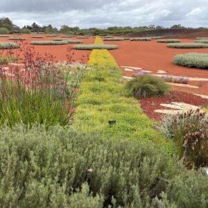 These gardens are so impressive if you look at the photos you will know what I mean – the colours and the health of the plants especially as you view them along side the red sand gardens. There are around 33 living gardens to see – some of us were especially interested in the Weird garden which consisted of huge rocks . Then there was the Eucalypt walk the Arid garden and the Serpentine Path just to mention a few. So much to see and admire!