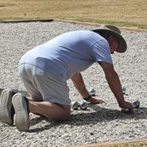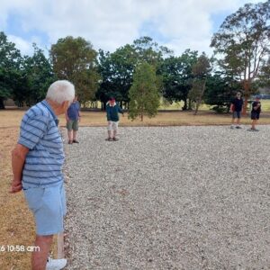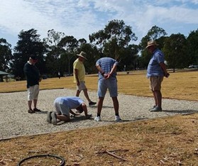 If you were in a location on Wednesday 28th January that allowed you to look across Dendy Park Brighton you would have observed a group of men playing Petanque on a true Petanque Piste constructed using stone aggregate. Oh dear, the challenge! Those intrepid players viewed were eight of our club members enjoying the challenges offered when playing on gravel rather than on the grass surface of the oval behind the Beaumaris Library. They were so very fortunate to have the weather gods on their side 28*c compared to 40*c the day prior.